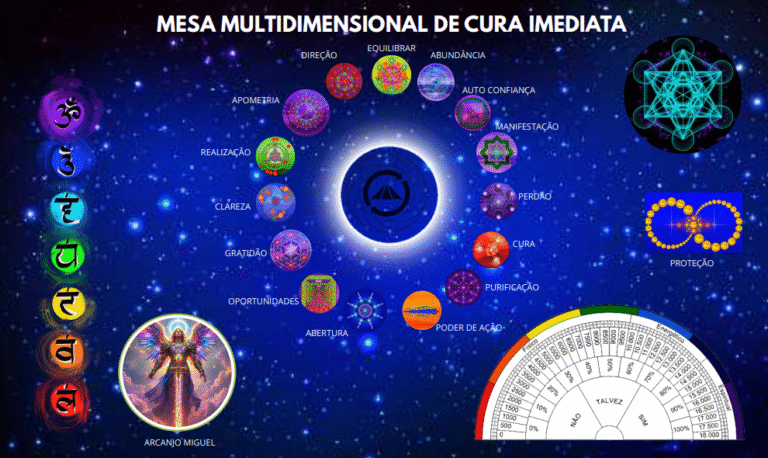 "Desperte seu potencial ilimitado. Com a radiestesia e a mesa multidimensional, você acessa um novo nível de cura e consciência. Eleve sua jornada e domine o fluxo energético ao seu redor."